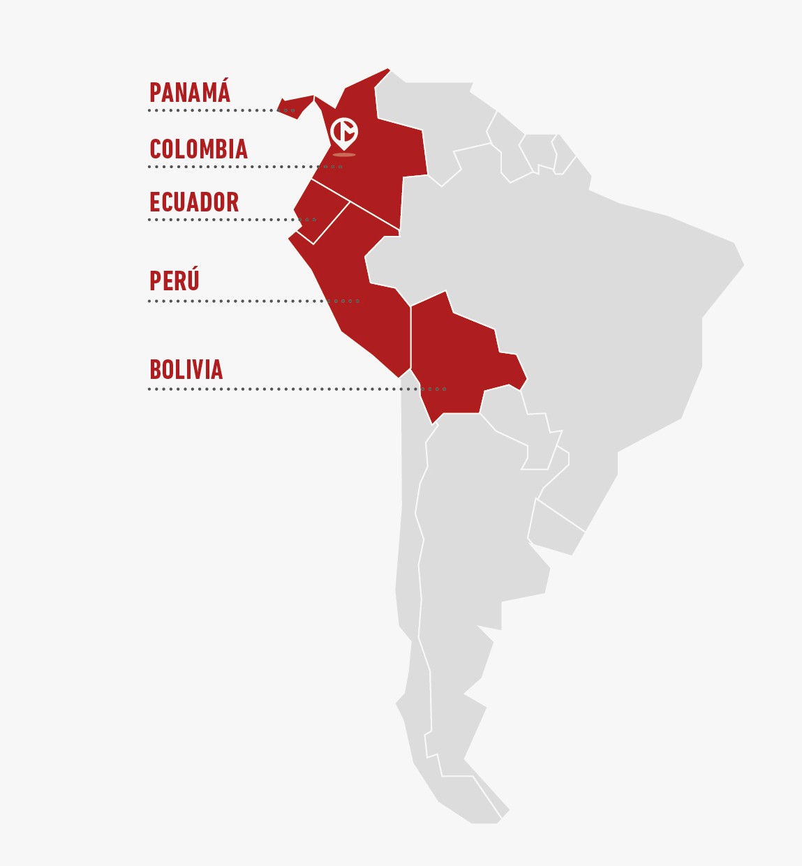 - Área de atención: Región Andina (Colombia, Perú, Ecuador, Bolivia, Panamá);
