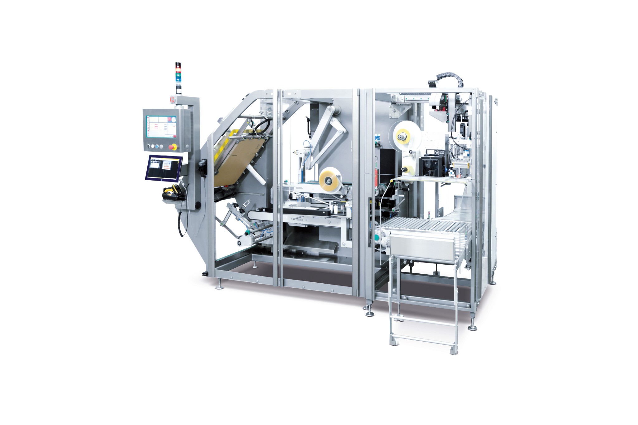 Automatic casepacker with horizontal infeed and an extremely compact layout.