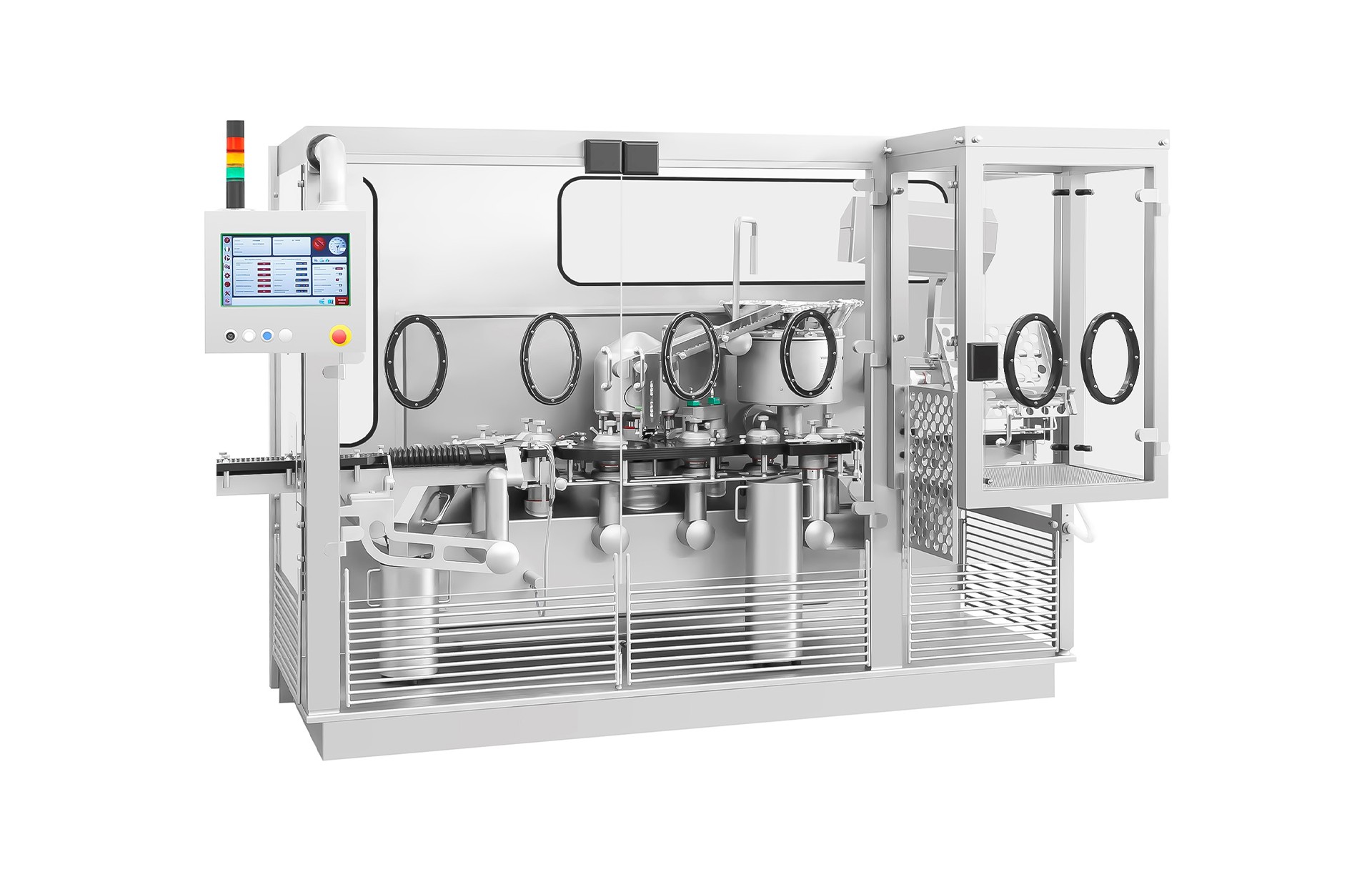 Alu-capping machine for liquid or lyophilized products in vials for Small Volume Parenterals (SVP) produced under aseptic conditions.