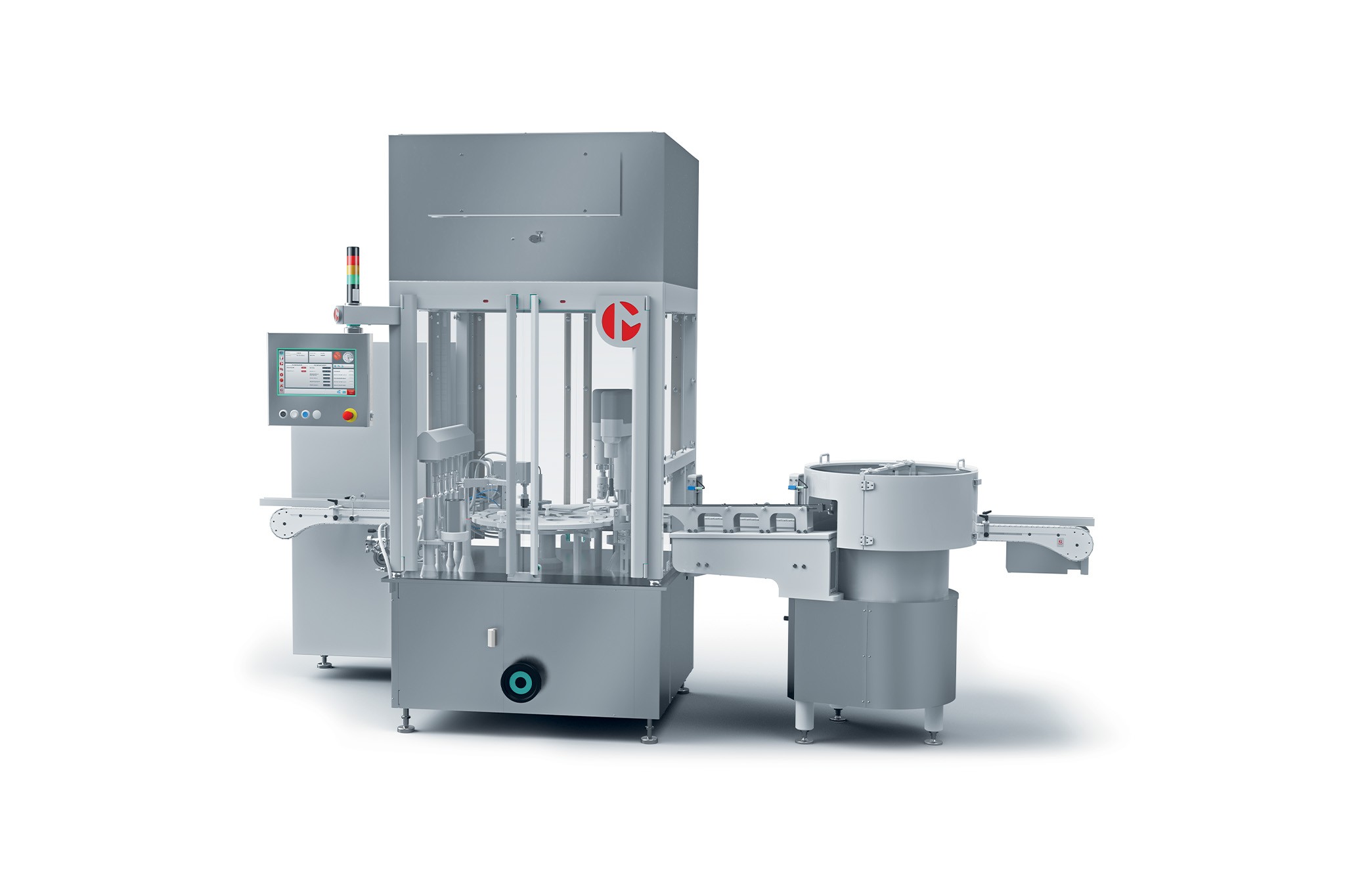 Automatic intermittent motion machine, suitable to fill and close a wide range of liquid containers.