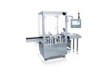 In case of vials, the diverting unit can transport vials to the alu-capping machine which can be integrated on the pharma wall like the filler. We can unload the vials straight in-line or through the backside, where we can install a coding unit for printing the batch number on the alu-cap.