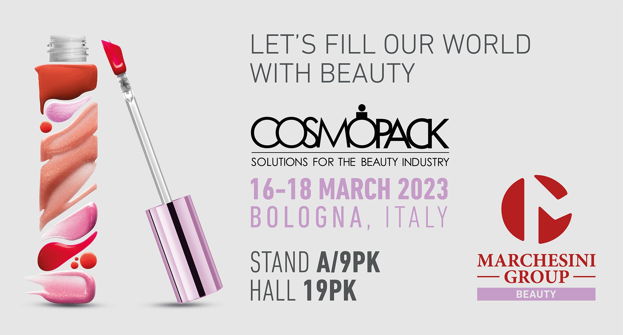 In 2023 Marchesini Group Beauty will again be exhibiting at Cosmopack (Bologna, 16-18 March), the hub of mechanical technologies for the cosmetics industry, which this year, in synergy with the Cosmoprof show, is forecast to return to pre-pandemic visitor and interaction levels.