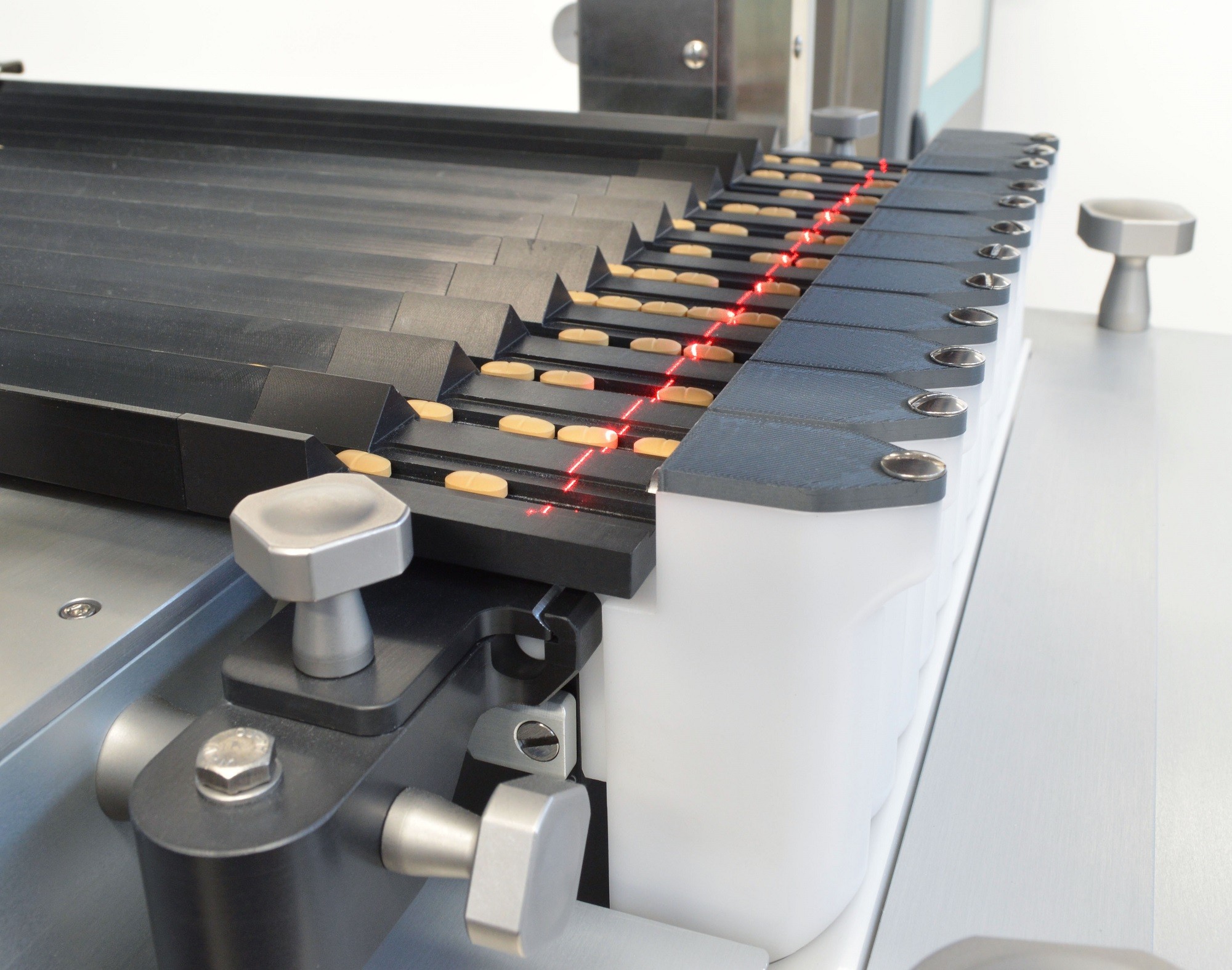 At the tradeshow will also be exposed a pre-feeder that handles about 3 thousand tablets a minute and utilises the new Valida technology developed in-house to verify the integrity of each tablet with feasible reject before feeding it into the blister. Unlike traditional cameras that verify the product just from the top, Valida’s laser triangulation system is able to detect the thickness of the tablets; it can consequently identify those broken exactly in half and reject them, instead of having to reject the whole blister.