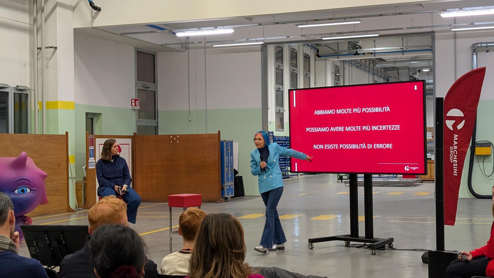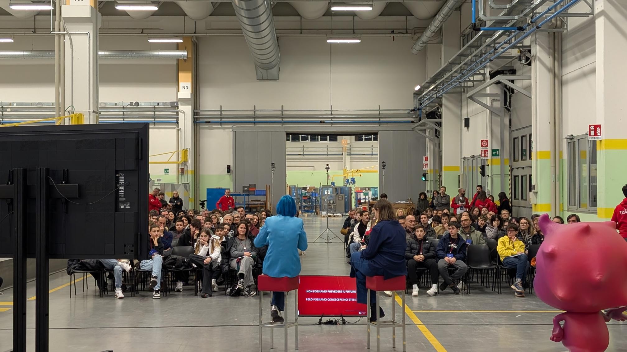 “Money, dedication, hard slog, repetitive, improvement, study, financial independence, living on your own.” These are just some of the concepts the boys and girls of middle-school age linked to their idea of “work”. This brainstorming session marked the start of the “Orienta” event hosted by Marchesini Group at its Pianoro Headquarters on 4 December for middle-school pupils and their parents, to share information about the jobs of the future and the most useful skills. More than 200 people attended: 115 mum and dads and 96 kids aged 12 and 13 getting to grips with the difficult choice of the right high school for them, at an age when life is often confusing and full of unanswered questions.