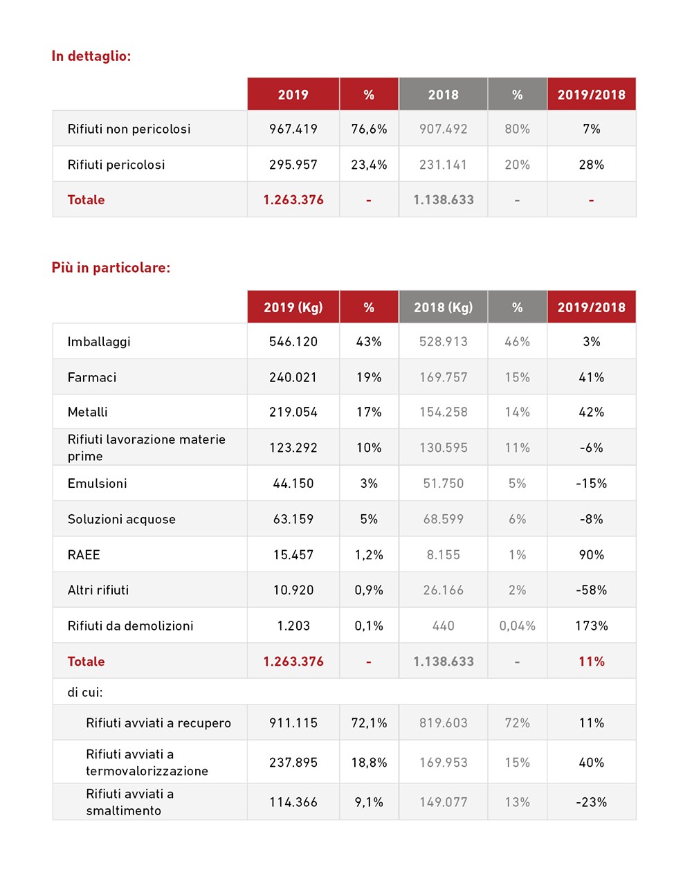 Maggiore efficienza nell’utilizzo dei materiali all’interno dei processi produttivi si traduce in una riduzione dei costi, dei rifiuti avviati allo smaltimento in discarica e degli sprechi di lavorazione, il tutto a beneficio dell’ambiente. Per tali motivi, il Gruppo promuove la gestione responsabile dei materiali e dei rifiuti, con particolare attenzione al trattamento e allo smaltimento dei rifiuti pericolosi.