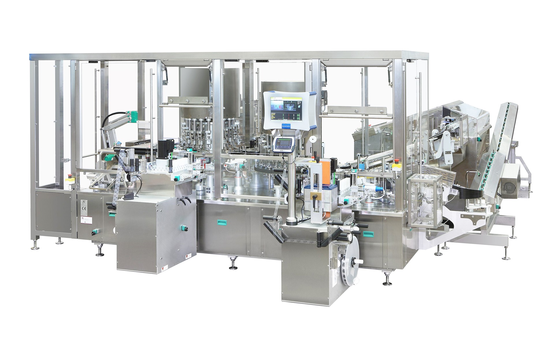 Macchina automatica a movimento continuo per l’astinatura, l’etichettatura e l’inserimento delle siringhe nel Safety Device.