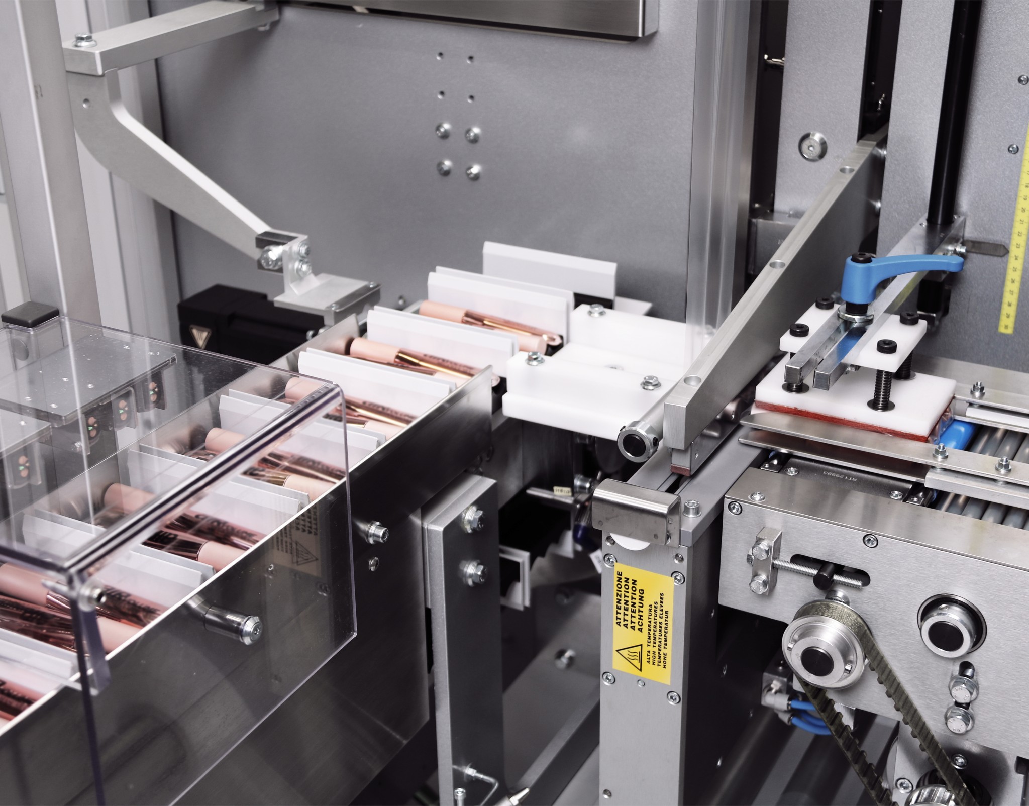 La notevole versatilità della V40 la rende adatta alle diverse esigenze di confezionamento sia dell'industria cosmetica che di quella alimentare.