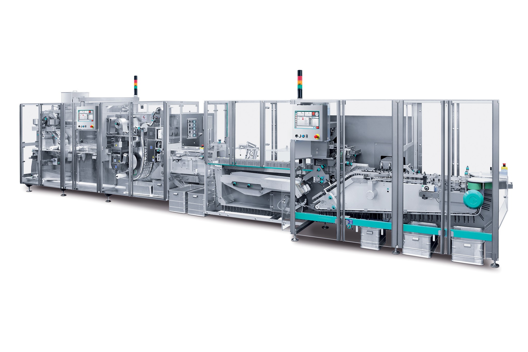 Macchina a movimento continuo per la formatura di Blister in PVC/ALU (o materiali diversi a richiesta) e confezionamento in astucci con chiusura ad incastro a lembi pari o alternati.