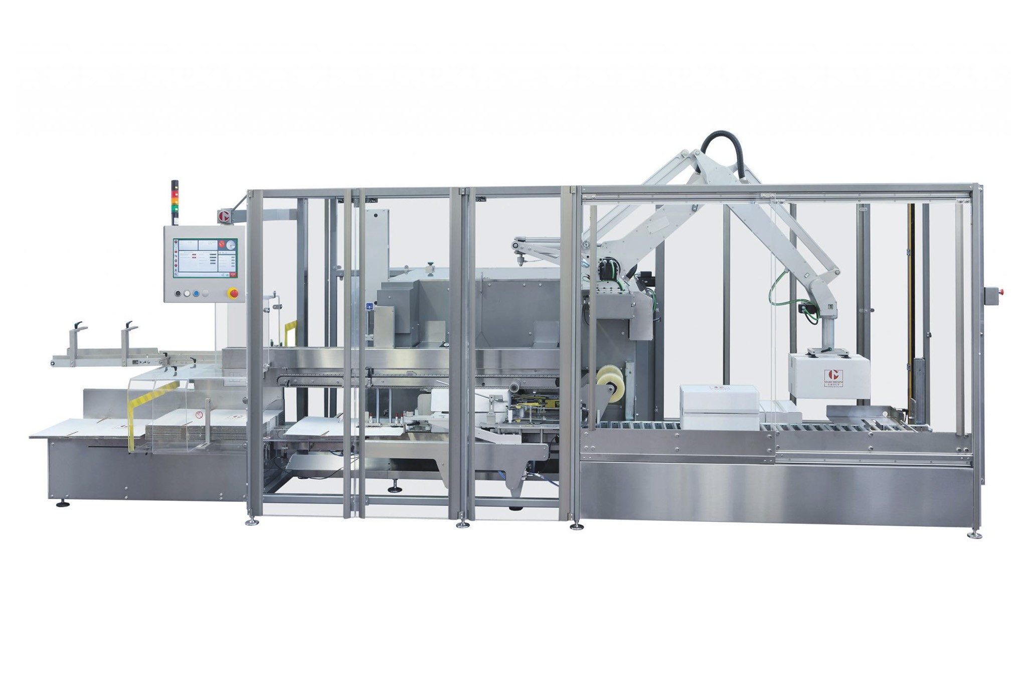 Il Cartopallettizzatore è una macchina monoblocco composta da un Incartonatrice e un Pallettizzatore.