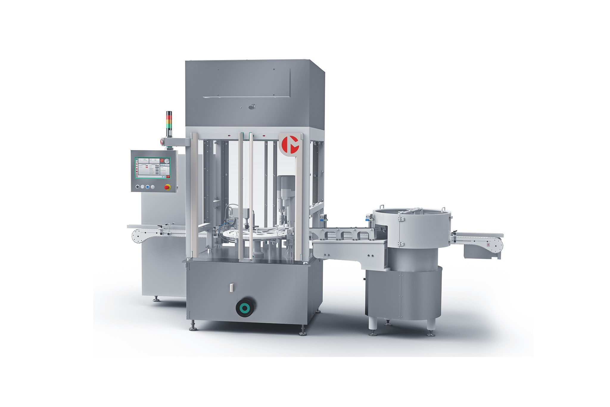 • Telaio rivestito in acciaio inossidabile e chiara separazione tra il trasporto dei flaconi e l’area meccanica. Macchina con caratteristiche cGMP ottimizzate.
